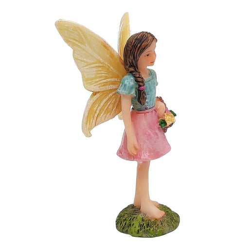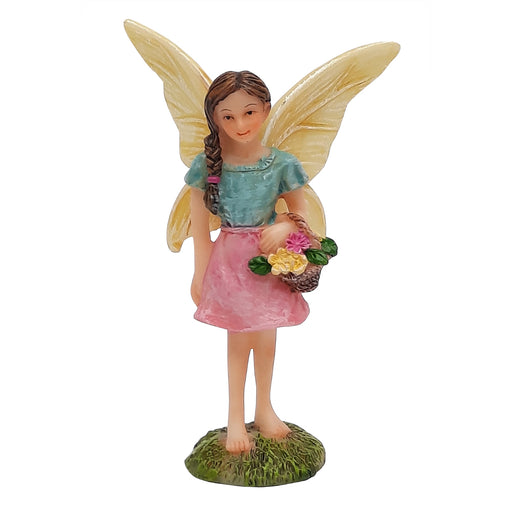 Fairy Blossom, standing with a beautiful basket of flowers. Material: Hand-painted polyresin Size: 5.5cm x 4cm x 8.5cmH Suitable for indoor and s...
