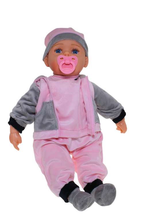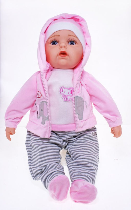 Super Cute is Baby Doll Chloe with a pink & grey fleecy outfit and hat to match. She has a super Soft Body, so she loves cuddles ! Her clothes ...