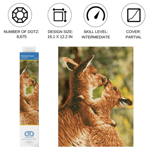 Diamond Dotz Kissing Kangas - 12.2" x 16.1"in captures a heart-warming moment between two kangaroos in a tender embrace. Featuring 8,675 Dotz parti...