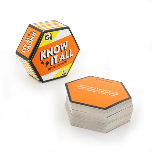 Overview of Know It All Card Game Think you KNOW IT ALL? In this fast-paced, quick-thinking trivia card game, challenge players to showcase their ...
