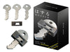 Another fascinating puzzle, KEY III consists of three key-shaped metal pieces which interlock together. The three pieces must be totally separated and then reassembled to solve the puzzle. Comes apart and reassembles with clever movements. NO FORCE required.