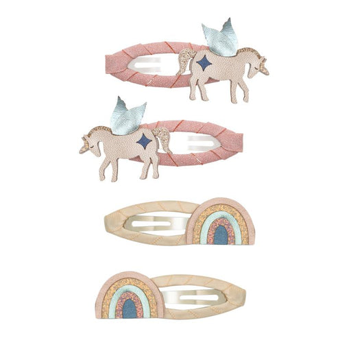 Add some mythical magic to their hair with our Winged unicorn and rainbow clic clacs! Two gracious metallic unicorns and two super sweet rainbows m...