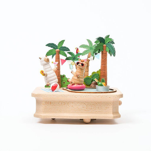 Unwind with the soothing melodies of this wooden music box. Featuring delightful alpaca enjoying a tropical getaway, it's the perfect way to de-str...