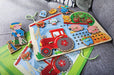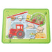 Attach your pieces to the wooden threading board with a tractor design using the two included laces allowing a varied range of story endings.
