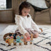 Painted with appealing designs in soft water colours, the differently shaped blocks can also be played with on their own for imaginative play.