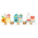 Sweet little bunny is taking his four bird friends for an adventure on his pull along train.