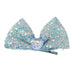 Disney Frozen Elsa Hair Clips are a magical accessory for Elsa fans. This soft blue mesh hair bow-embellished in iridescent sequin fabric features a central heart-shaped gem with an Elsa print. Secure into the hair with a grosgrain ribbon-covered double-prong alligator clip.