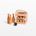 This handy crate of classic timber skittles will bring hours of fun to young and old. Just add your own indoor or outdoor “alley” & get skittling. Players score by rolling each of the three balls to knock as many of the pins down as they can. Some variations of this ancient game only allow points to be scored if the “king pin” has fallen.