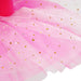 This sparkly tutu features a comfortable stretch jersey bodice with a sparkling sequin central panel and character printed heart gemstone. The tutu has an integrated leotard pant with a multi-layered tulle skirt. The shoulder ruffles and skirt uses new and improved organza which shimmers with light-reflecting holographic spots. No glitter, mess-free and better for the environment.