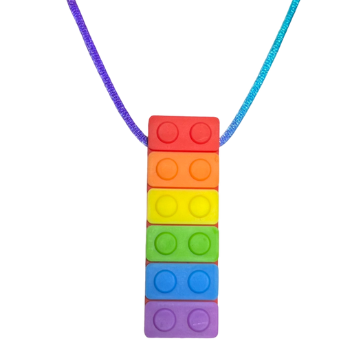 This Rainbow Building Block/Brick sensory chew necklace has a long shape that makes it very versatile. It is a lightweight, soft chew that is grea...