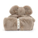 The Smudge Elephant Blankie is dreamy soft in a rich, warm grey fur. Our floppy-eared elephant peeps over the corner of a luxurious un-stuffed blanket with squashy paws for little hands to hold.