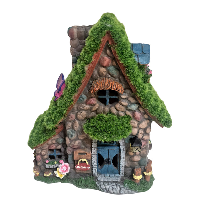 Please Note: Moss effect on the cottage roof will weather to a more earthy natural colour when outdoors.